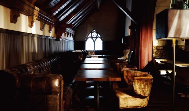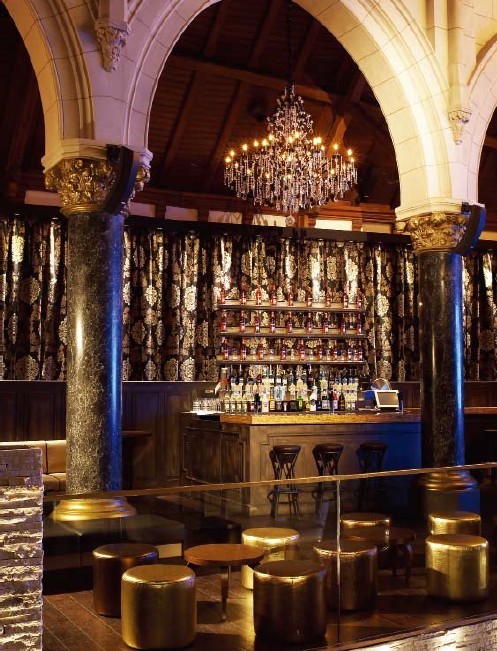 以前是一座圣公會(huì)教堂,PURESANG會(huì)所設(shè)計(jì)公司保留了諸如拱門、挑高吊頂及奢華枝形吊燈等教堂原有的哥特式建筑元素,水晶、鍍金以及各種材料的混搭組合等,又為它的現(xiàn)代化設(shè)計(jì)定下了基調(diào)。以絲絨和皮革制成的奢華家具極具維多利亞風(fēng)格。PURESANG公司巧妙地利用鍍金工藝,將金色的金屬樹葉裝飾在木料、石料及金屬等材質(zhì)的表面,盡顯精致細(xì)節(jié)。