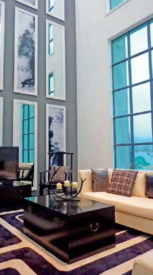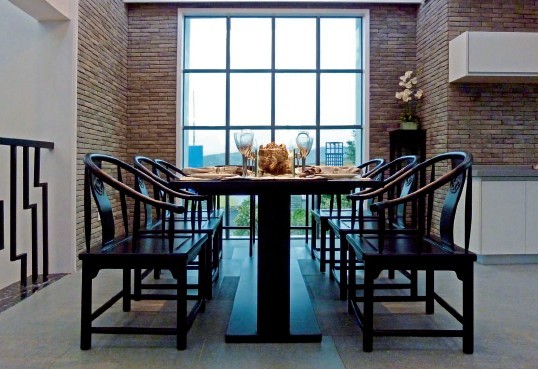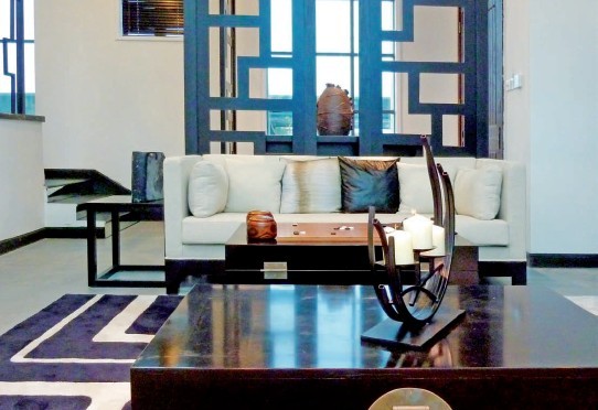 在配飾的選擇上,茶幾上具有中式文化味道的圍棋和功夫茶具,雅致而不奢華,穩(wěn)重而不沉悶。此外,傳統(tǒng)的花瓶造型用現(xiàn)代手法重新設(shè)計(jì),以現(xiàn)代私人會(huì)所設(shè)計(jì)手法表現(xiàn)水墨畫另一面的墻面裝飾畫等等,既新穎又獨(dú)特。挑高的客廳中,設(shè)計(jì)師運(yùn)用LED 節(jié)能燈取代了傳統(tǒng)別墅的吊燈,有利于減少高發(fā)熱的光源,從而減少碳的排放。