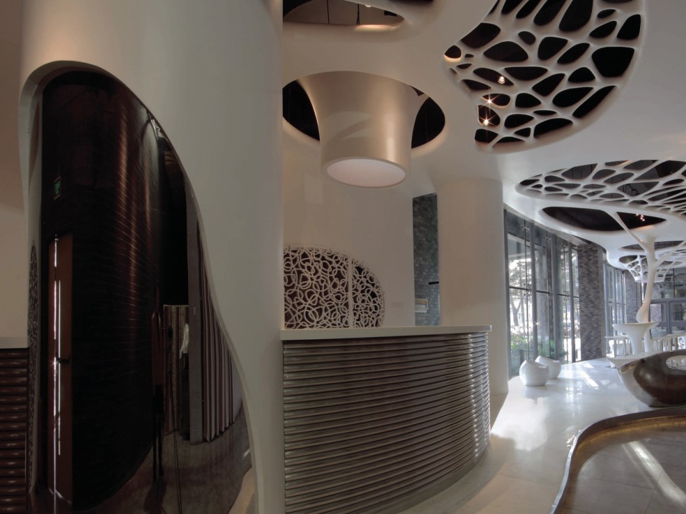 藝術(shù)水療會(huì)所的形態(tài)控制正是依據(jù)這一心理過程的把握,它居于似與不似之間,像與不像之中,有重有輕,有疏有緩,很好地創(chuàng)造了一次嶄新的超自然體驗(yàn)。這種體驗(yàn)仿佛把我們置身于未來的意象自然之中,它凝固了我們生命的機(jī)體,融化了人與空間的交流,也融化了我們精神所向往的境界。