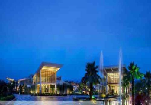 在度假酒店規(guī)劃設計中,園林式建筑是常見的構(gòu)筑手法。設計師如何將酒店眾多復雜功能進行合理的調(diào)配,并用一個共同的特征將其融為一個統(tǒng)一的整體是首要的考量。由于經(jīng)濟的高速發(fā)展加速了城市的繁雜,使人日益期望于自然中獲得放松,而冰冷的所謂現(xiàn)代建筑抑或是西洋舶來品則與傳統(tǒng)渴望“寄情山水”的情結(jié)相去甚遠。